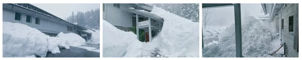 津南醸造が位置する新潟県津南町は、世界でも有数の豪雪地。例年3メートル級の積雪に包まれ、多い年には4メートル近い雪が降り積もります。冬の津南醸造は、まさに「雪に埋まる酒蔵」です。